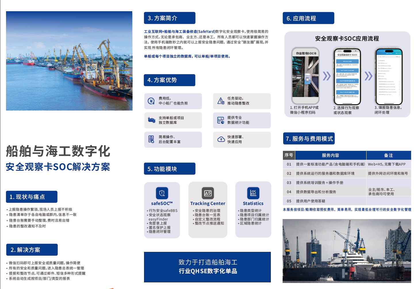 賽為安全公司獨立自主開發(fā)的“賽安·安全觀察卡 safeSOC”,可以進行人員行為安全觀察、設(shè)備、物料和環(huán)境的安全狀態(tài)觀察,極簡易的操作方式,業(yè)主、本工、承包商通過手機掃碼,可以在數(shù)秒內(nèi)上報隱患,可后續(xù)進行閉環(huán)跟進管理,降低或杜絕船艙等動火作業(yè)事故的發(fā)生。