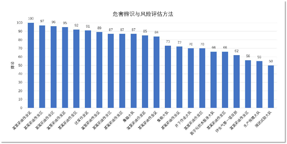 | 以“生產(chǎn)管理業(yè)務(wù)科技干部”為例,精準(zhǔn)掌握每各班組對某一個 “安全履職能力知識和技能”要求的掌握情況,比如下圖所示各班組對“危害辨識和風(fēng)險評估方法”的掌握情況(見下圖) | |||||||