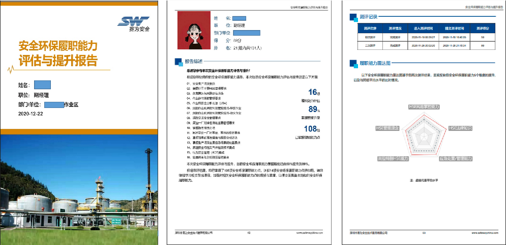| 精準(zhǔn)評判每一個人“安全履職能力”,系統(tǒng)自動輸出“個人安全履職能力報告” (見下圖) | |||||||