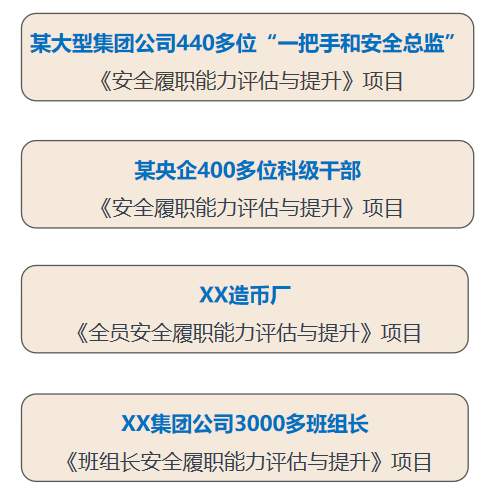 | 緊緊圍繞以“高層管理層安全領(lǐng)導(dǎo)力”建設(shè)為核心,從四個層次系統(tǒng)打造企業(yè)“安全履職能力建設(shè)”,有效提升企業(yè)安全管理績效水平。 | |||||||